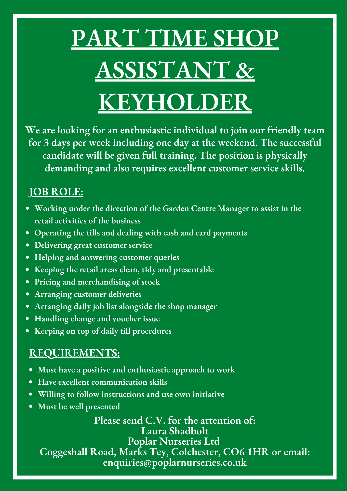 Jobs at Poplar Nurseries